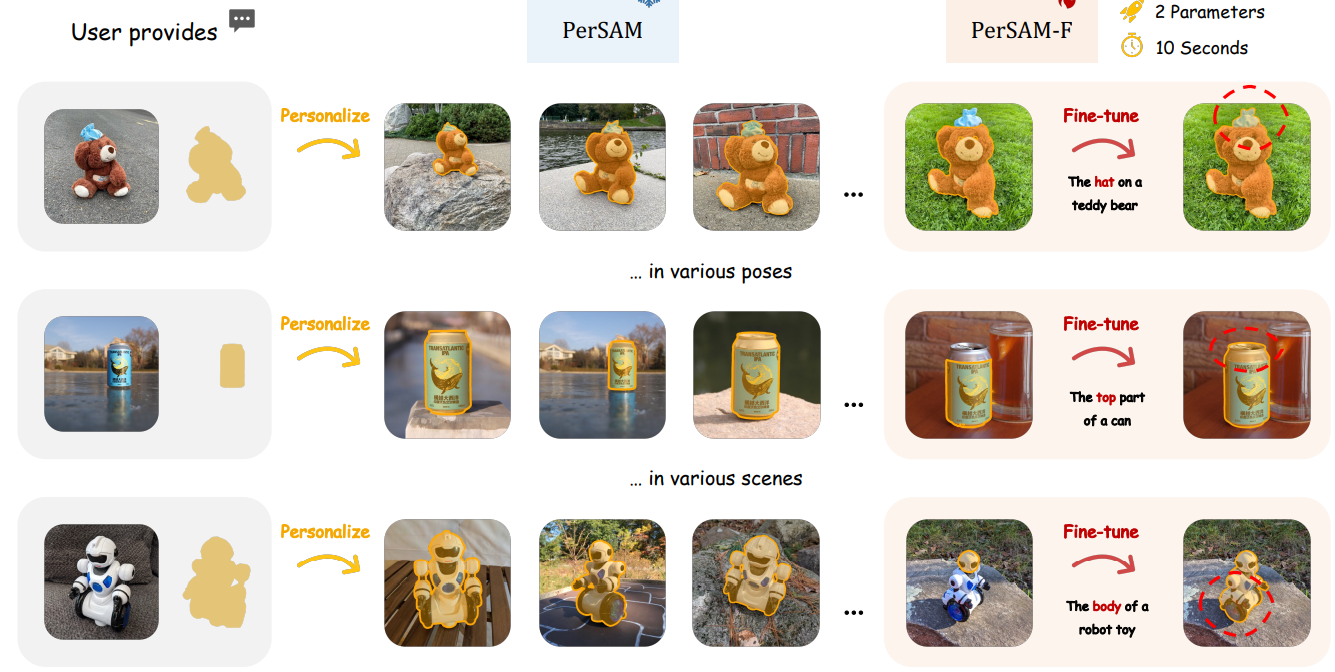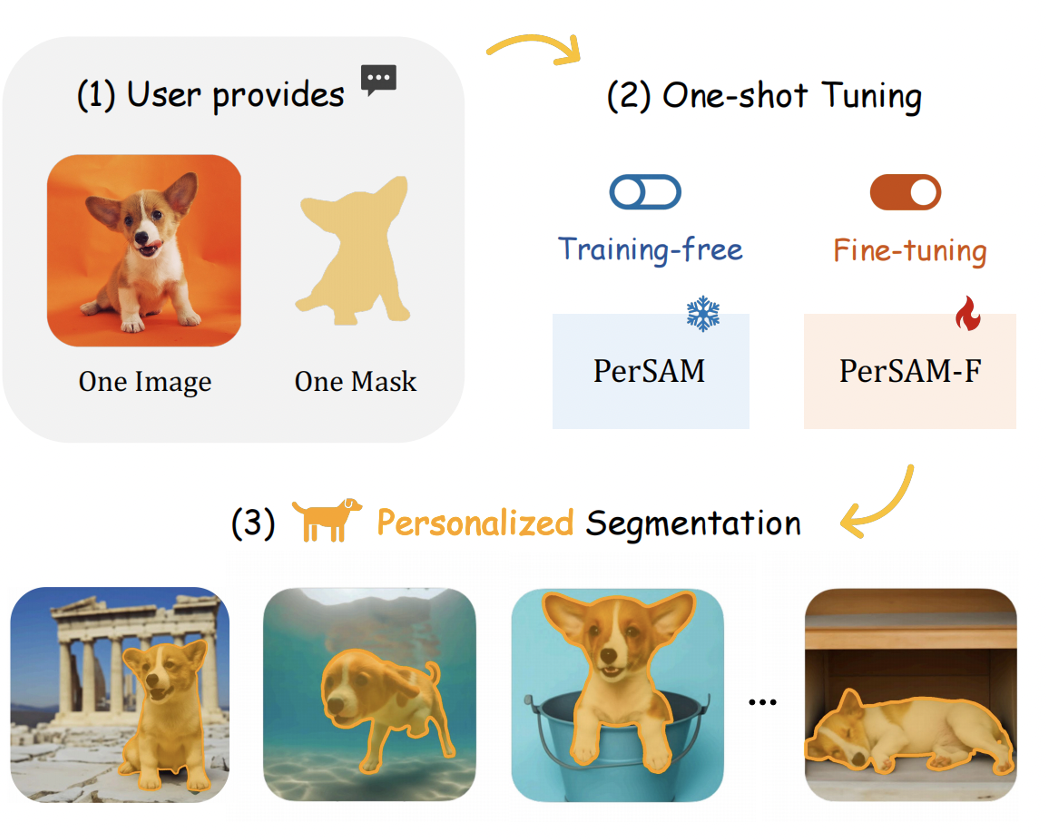 PerSAM은 내 앨범에서 강아지 사진을 찾는 작업과 같이 자동으로 특정 개체를 탐지하고 분할할 수 있을까? 에서 시작한다.