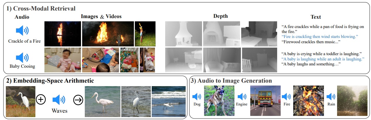 이미지의 binding 속성을 활용하여 각 양식의 임베딩을 이미지 임베딩에 정렬하는 것만으로도 모든 양식에 걸쳐 정렬이 이루어짐을 보여준다.