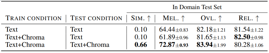 - 멜로디 컨디셔닝을 도입하여 멜로디 구조와 일치하는 음악을 생성할 수 있음