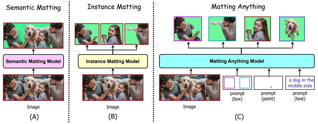 - 단일 모델로 다양한 유형의 image matting 처리 가능