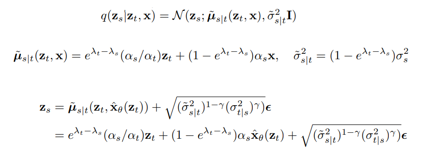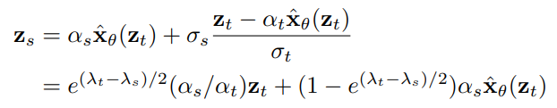ODE를 풀기 위한 DDIM sampler의 업데이트 규칙
