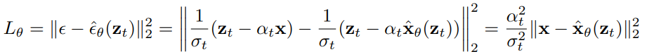 인 표준 프로세스에서 DDPM의 ε-prediction은 weighted x-prediction으로 볼 수 있다.