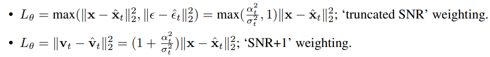 DDPM에서는 SNR이 0일 때 암시적으로 0의 가중치를 부여하므로 적합하지 않다.