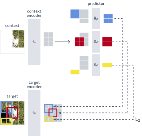 I-JEPA의 기본 개념은 추상 표현 공간에서 누락된 정보를 예측하는 것.