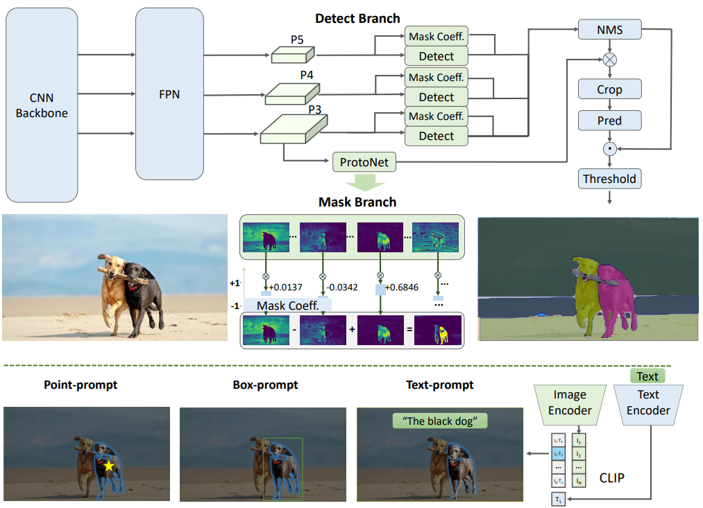 FastSAM에서는 segment 작업을 CNN 탐지기에 의한 all-instance segmentation과 prompt-guided selection 단계로 나눈다.