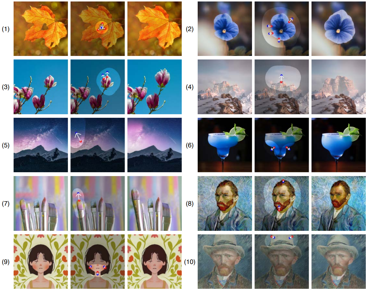 DragGAN에 따라 모션 감독 및 포인트 추적의 반복 절차를 사용.