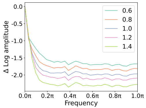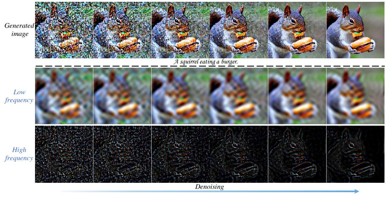 Denoising process에서 저주파수 구성요소는 거의 바뀌지 않지만, 고주파수 구성요소는 노이즈에 민감하며, 급격히 변함.