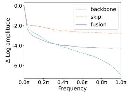 잔차 연결을 통해 전달되는 feature에는 고주파수 정보가 많이 포함되어 있음.