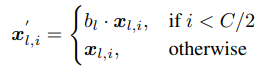 l번째 블록의 backbone feature xl을 b를 통해 증폭하는데, denoising 작업의 특성상 지나치게 부드러운 이미지가 생성될 수 있으므로 절반의 채널에만 적용.