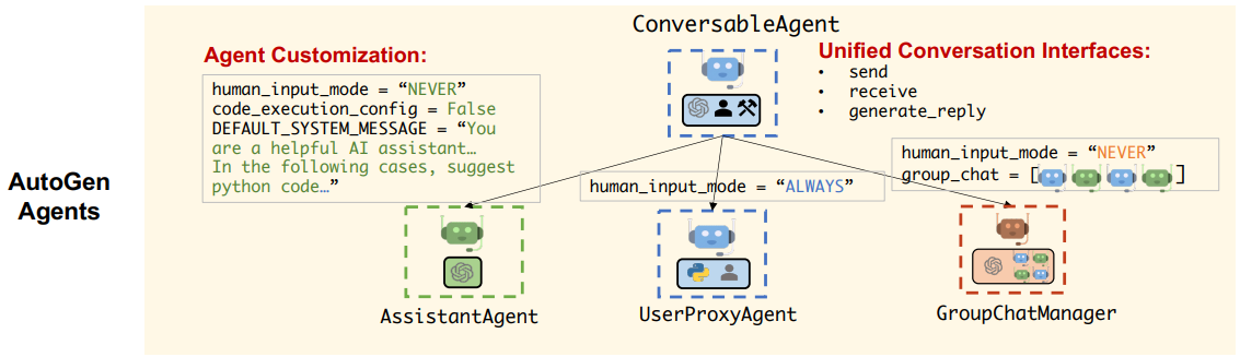 개발자는 AutoGen을 통해 다양한 역할을 가진 에이전트를 쉽고 빠르게 생성할 수 있다.