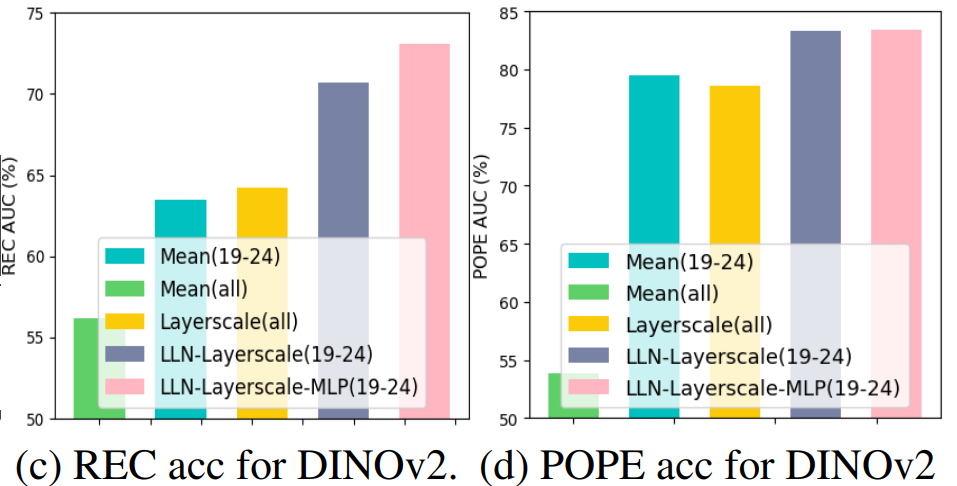 DINOv2에서는 얕은 계층의 feature를 혼합 시 성능이 떨어짐. 또한 MLP를 도입했을 때 성능 향상.