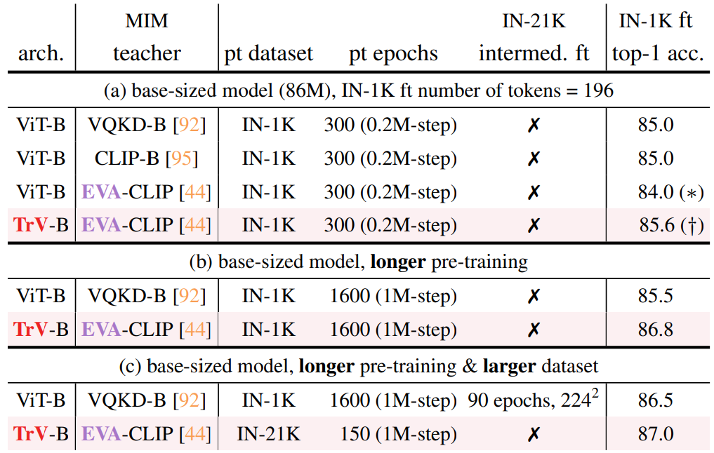 연구진은 EVA-01의 많은 피라미터로 인해 더 많은 pre-training이 필요하다고 가정하여 실험했다. (b)