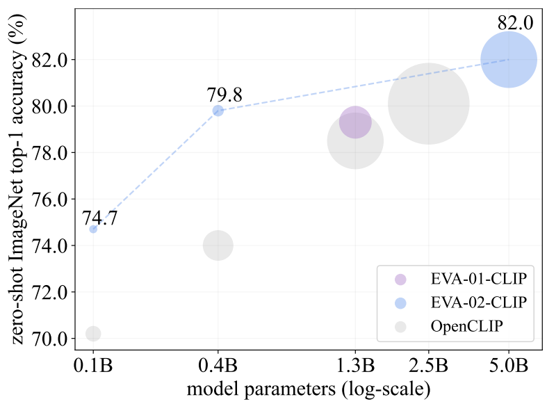 CLIP 훈련의 효율성과 효과를 획기적으로 향상하는 일련의 모델인 EVA-CLIP 제안.