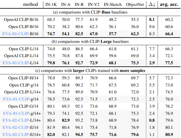 CLIP 훈련의 효율성과 효과를 획기적으로 향상하는 일련의 모델인 EVA-CLIP 제안.