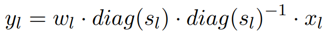 다음과 같은 양자화 동작을 시뮬레이션하여 스케일링 벡터 sl을 훈련한다.