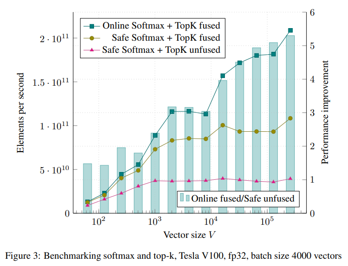 Beam search와 같이 softmax → TopK 순서로 진행되는 경우, 일반적으로 5번의 메모리 액세스가 필요하다.