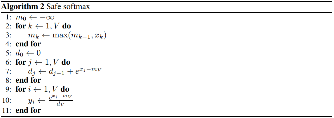 하지만 safe softmax는 최댓값을 구하는 과정이 추가되어 총 4번의 메모리 액세스가 발생한다.