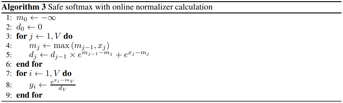 온라인으로 최댓값과 정규화 항을 업데이트하는 방식으로 메모리 액세스를 3번으로 줄일 수 있다.