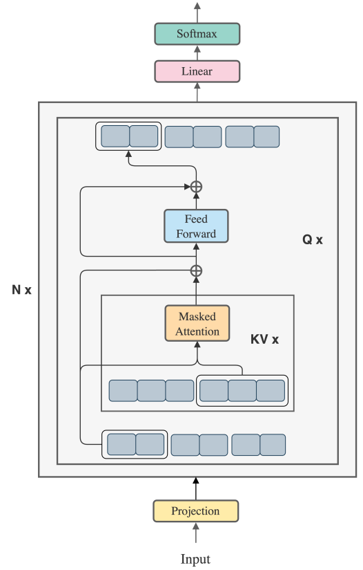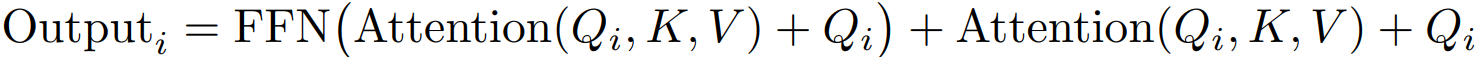 블록별 attention에 FFN과 잔차 연결까지 융합. (하나의 쿼리 블록에 대해 attention + FFN까지 진행)