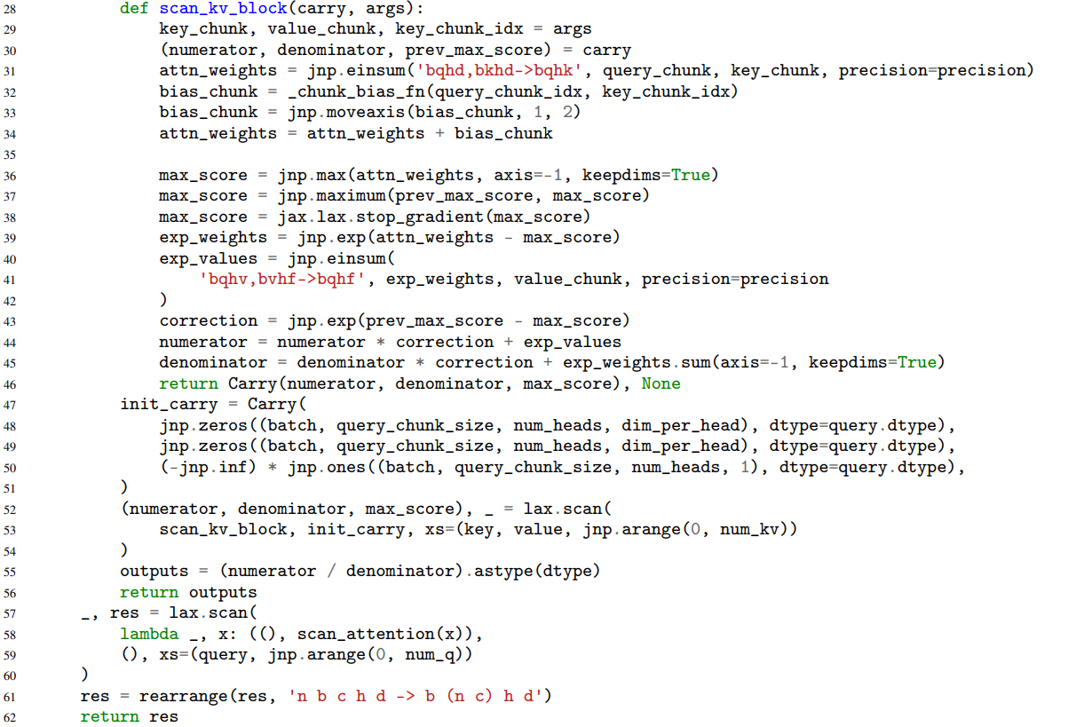 이 글 최하단의 코드를 보면 그냥 각 쿼리 블록별로 이 논문에 나온 방식을 KV 블록에 대해 반복하여 attention 값을 구함.