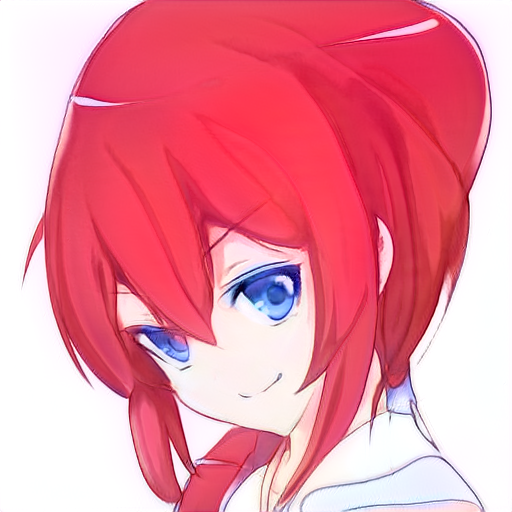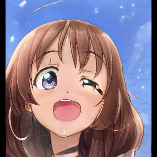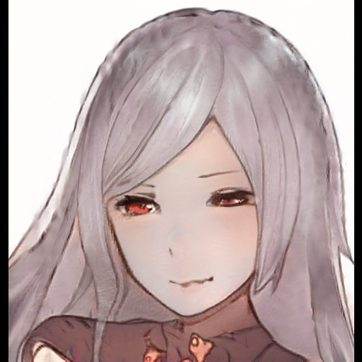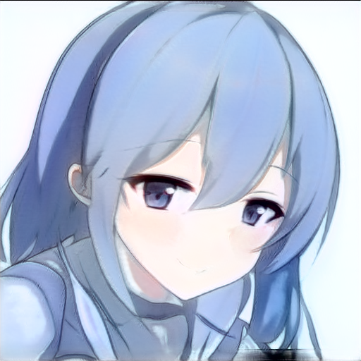 쭐어콘 데이터셋의 컬러 스펙트럼이 다양하지가 않아서 푸른 계열의 특징은 잘 살지 않지만 훈련 전 이미지 특징을 잘 가지고 있는 이미지들도 보인다. 쭐어콘 데이터셋의 배경이 모두 흰색이라 배경색이 머리색으로 바뀐 이미지도 있다.