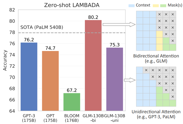 GPT style architecture 대신 General Language Model (GLM) 알고리즘을 채택하였다.