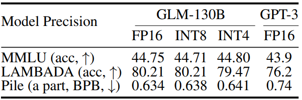 사후 훈련 없이도 FP16 정밀도의 GPT-3보다 성능이 좋다.