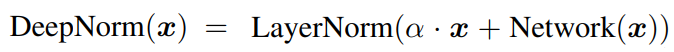 위에서 언급한 DeepNorm을 사용하여 깊은 레이어에서 값이 커지는 것을 방지.