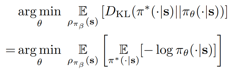 피라미터 θ를 가진 정책 πθ의 경우, 이는 데이터 분포 pπβ(s) 아래에서 πθ와 π*의 KL divergence를 최소화하는 것으로 수행된다.