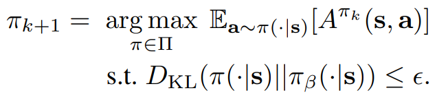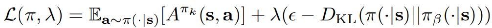 일부 offline algorithm에서는 지금까지 본 모든 데이터(offline+online data)에 대한 분포 πβ와 관련된 제약 조건을 추가하여 이러한 문제를 해결한다.