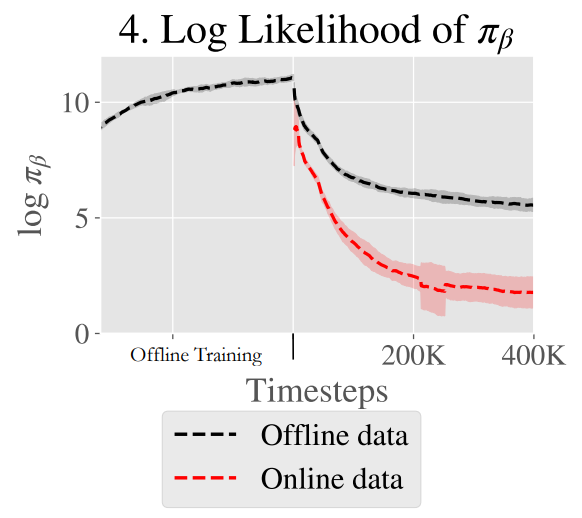 아래 그림을 보면 online fine-tuning 시작 시 log likeihood가 감소함을 볼 수 있다.