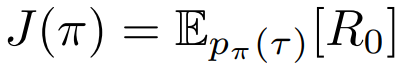 state s, action a, policy π(a|s), rewards r(s,a), dynamics p(s'| s,a), discounted return Rt.