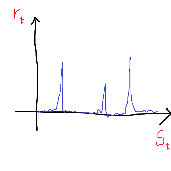 예를 들어, 아주 가끔씩만 큰 보상을 얻을 수 있는 상황의 경우 보상 rt는