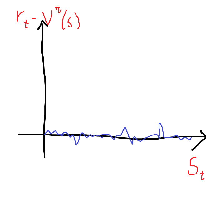 하지만 기준선으로 Vπ(s)를 뺄 경우 '보상에 대한 gradient'가 아니라 '현재 행동이 정책을 따를 때에 비해서 얼마나 이점을 얻었느냐'에 대한 gradient가 된다. (참고)