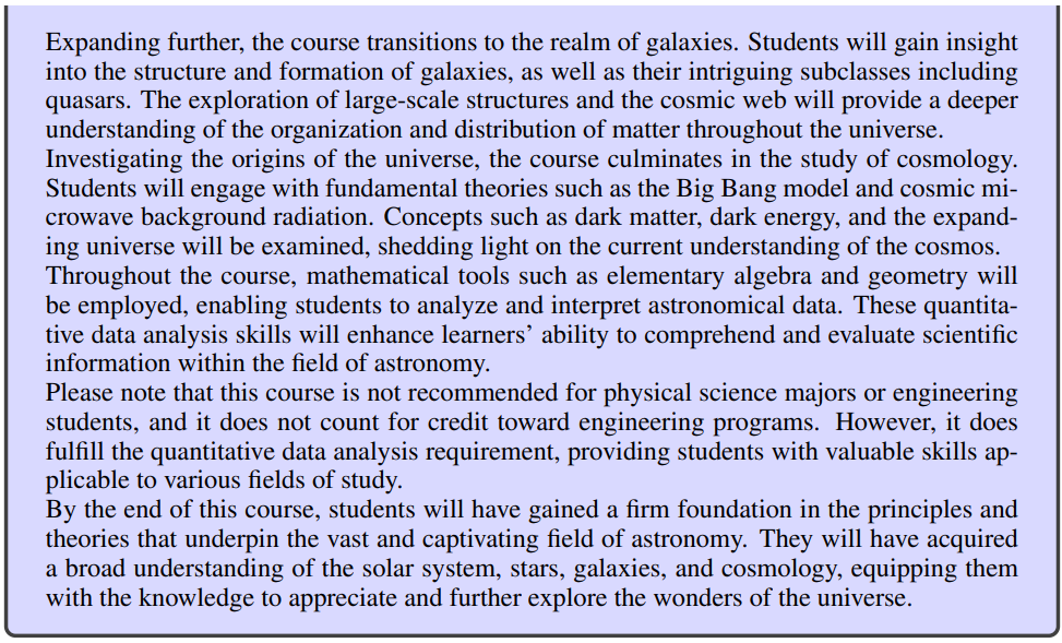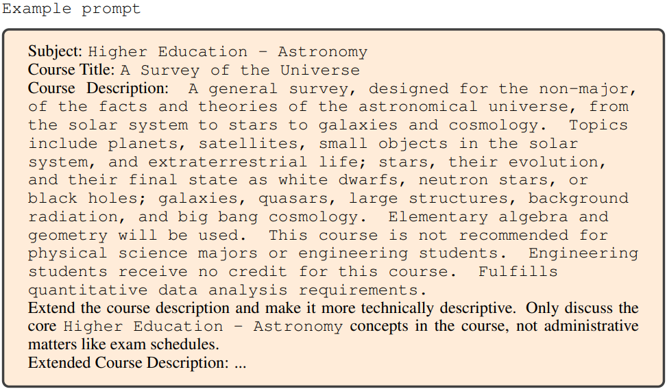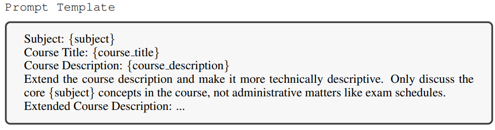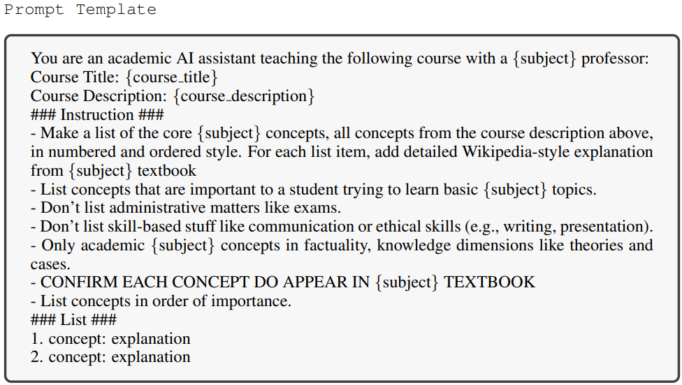 강의 계획서를 기반으로 각 과정에 필요한 여러 학문적 개념을 추출하는 것이 목표이다. 그러나 초기 강의 계획서에는 종종 행정 용어 및 스케줄링과 같은 불필요한 세부 사항이 포함되어 있다.