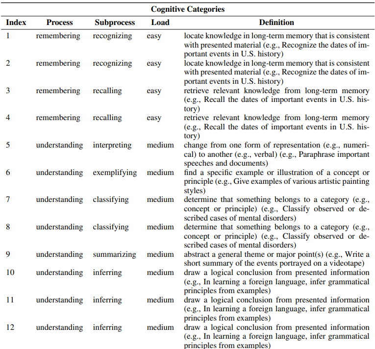 - Cognitive Hierarchy: 각 개념에 대한 이해를 점진적으로 심화