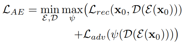 재구성 손실 + 적대적 손실로 훈련됨. (ψ = 판별자)