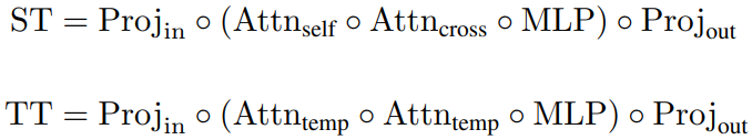 Spatial transformers (ST), and temporal transformers (TT).