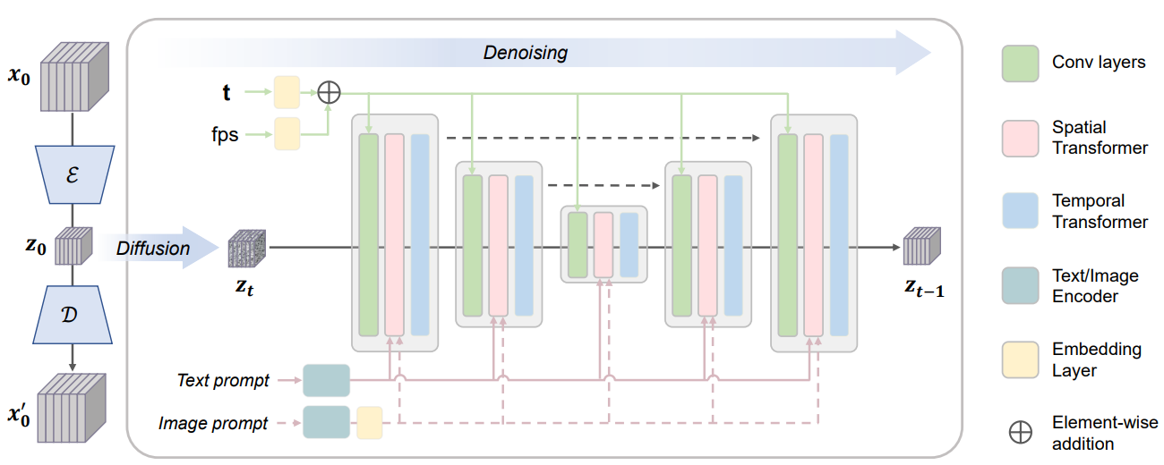 - Text-to-Video Model: SD U-Net에 temporal attention layer 통합. 개념 망각을 방지하기 위해 이미지, 비디오 공동 훈련 전략 사용. 2초 길이의 1024 x 576 해상도의 비디오를 생성할 수 있다.