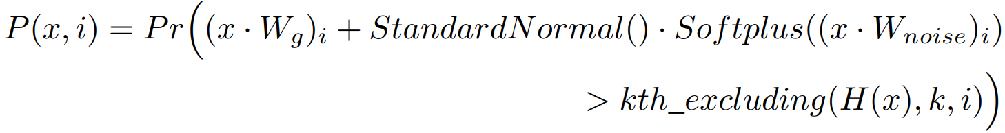 위와 비슷하지만 G 대신 입력 x와 전문가 i에 대해 gating network가 0이 아닌 값을 출력할 확률 P를 사용한다.