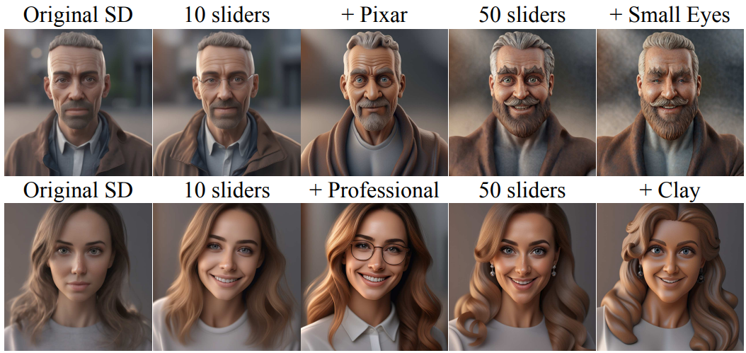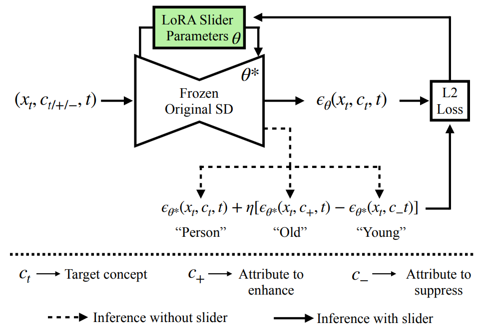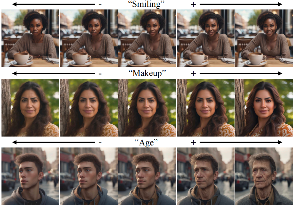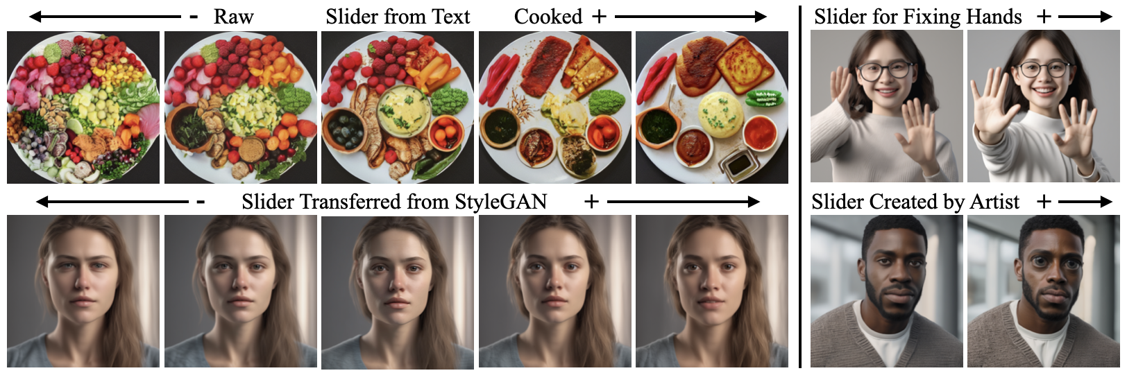 다른 속성과의 간섭을 최소화하면서 하나의 개념에 해당하는 low-rank 피라미터 방향을 식별하고 정밀하게 제어할 수 있는 concept slider를 제시한다.