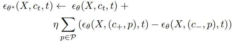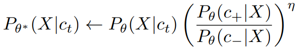 대상 개념 ct(text), 모델 θ 주어지면 우리의 목표는 image X에서 c+와 c-의 likeihood를 수정하는 θ*를 얻는 것이다.