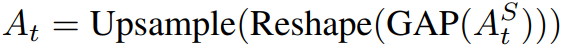 Global average pooling을 사용하여 적층 된 self-attention map을 집계하고 재구성, 업샘플링을 통해 xt와 같은 해상도로 만든 뒤