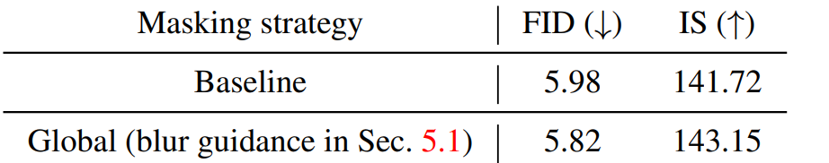 Blur guidance와 달리 xt의 온전한 패치가 명시적으로 포함되어 있어 원본 분포와 너무 멀어지는 것을 방지하면서도 역방향 프로세스에서 예측해야 할 중요한 정보를 은폐할 수 있다.