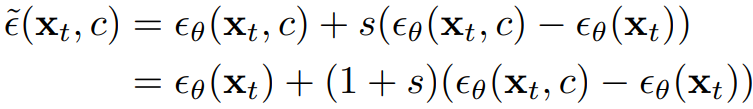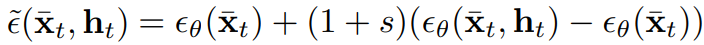 ht와, 무조건 예제를 x̃t로 일반화 조건 수식에 삽입하여 denoising의 지침으로 사용.