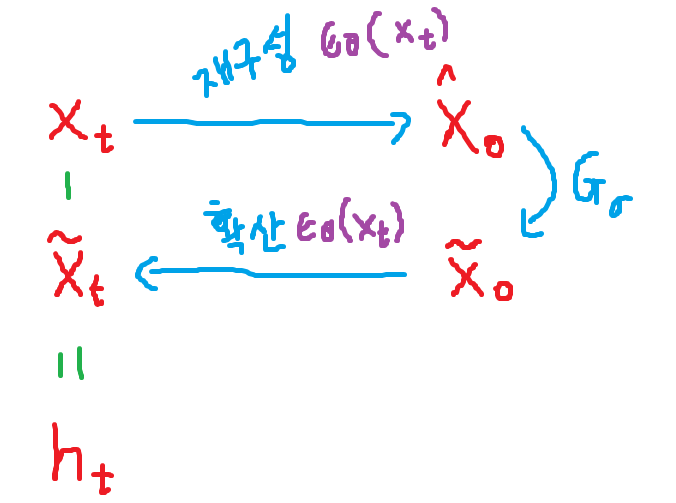 Timestep t에서 중간 재구성을 얻을 수 있다.