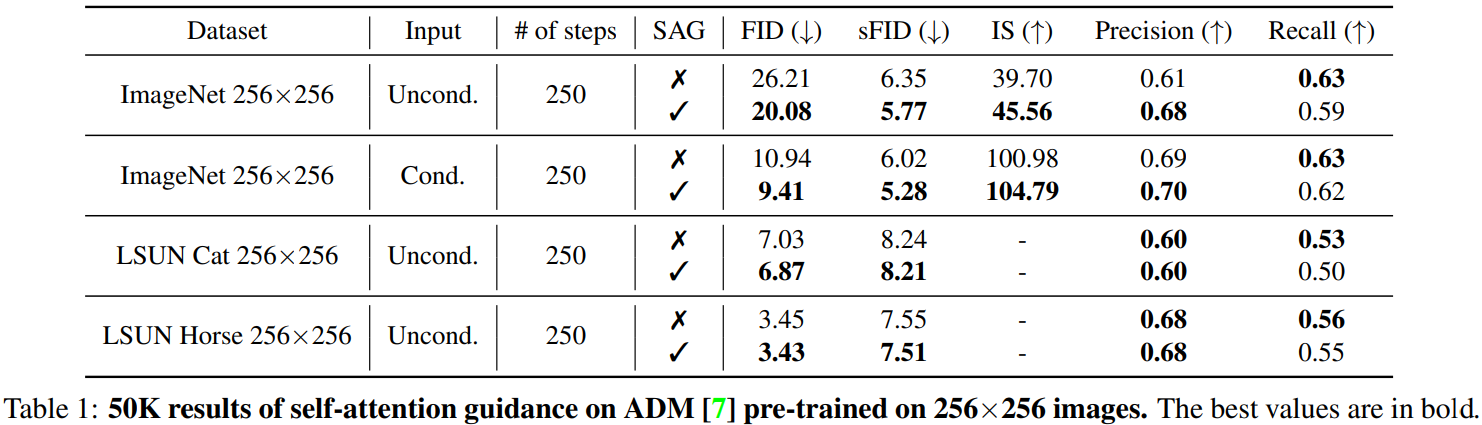 외부 조건과 훈련이 필요 없는 blur guidance, Self-Attention Guidance(SAG) 제안