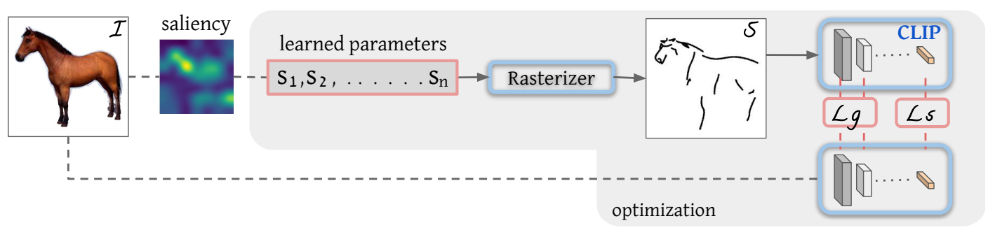 이전의 연구들에서는 스케치 데이터셋을 사용하는 경우가 많지만 출력 스타일을 제한하기 때문에 비채택. 대신 CLIP 이미지 인코더를 사용하여 사진을 추상 스케치로 변환한다.
