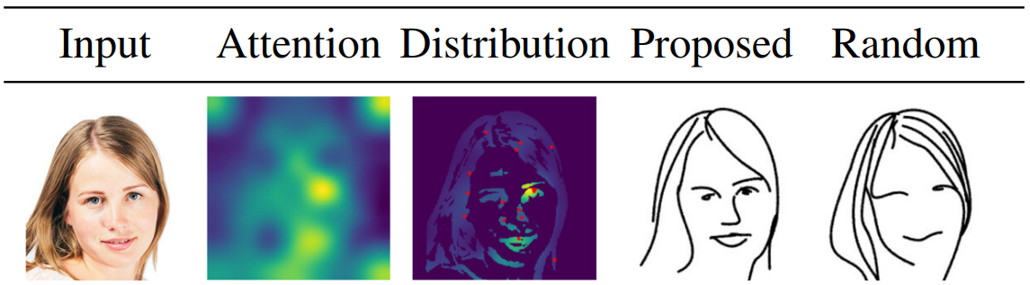 ViT를 통해 얻은 attention map과 XDoG를 통해 얻은 edge map을 곱한 후 softmax를 적용하여 최종 distribution map을 얻고, 해당 분포를 기반으로 초기 제어점을 배치한다.