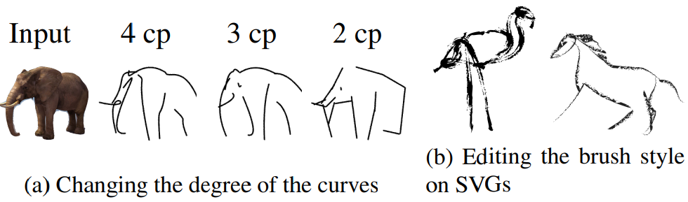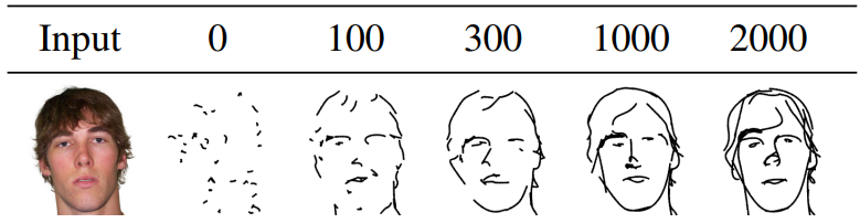 제어점은 rasterizer R에 공급되고, 획 수를 변경하여 다양한 수준의 추상화를 생성한다.